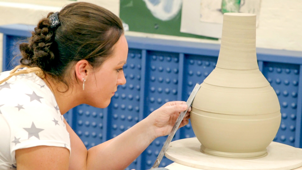 Deltagarna ska tillverka två identiska lampfötter i lera som kan dekoreras och elektrifieras. Dessutom väntar ett känsloladdat keramiktest med personliga uttryck och detaljer. Del 5 av 10.