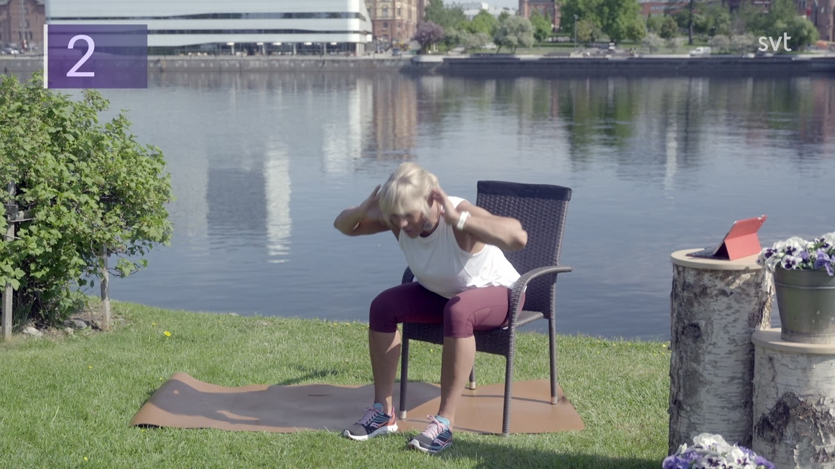 Sofia Åhman leder SVT:s hemmagympapass. Denna gång är temat styrka/kondition.